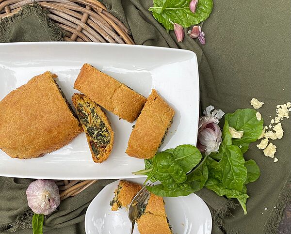 Spinach and Feta Quiche baked into a light, crisp crust.
